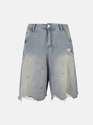 Haaura Studded Distressed Raw Hem Jorts