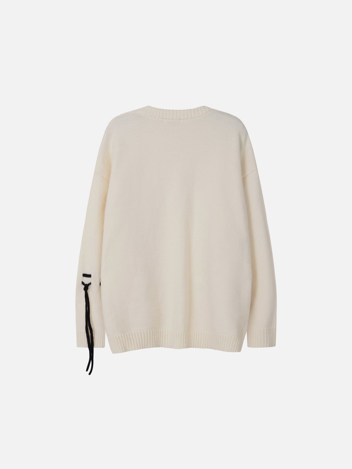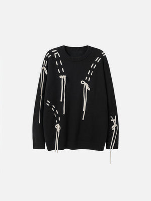 Removable Contrast Drawstrings: Detachable cords at the hem, cuffs, or panels allow DIY styling—tie, loop, or remove for a new look each wear. Reinforced Bandage-Style Knit: Tight, structured weaving offers support, shape retention, and a sculptural silhouette. Soft Yet Resilient Blend: 42% acrylic, 30% PBT, and 28% nylon ensure stretch, recovery, and all-day comfort. Modular Streetwear Styling: Wear it under blazers, over tanks, or as a standalone statement—this sweater adapts to your creative direction.