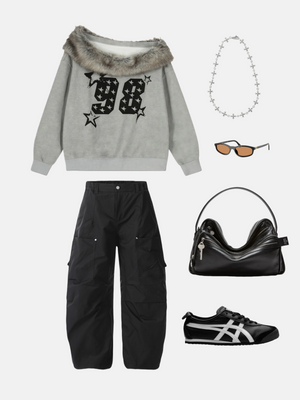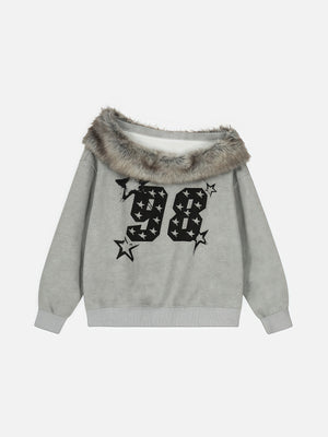 Stay cozy, stay chic. The Haaura Faux Fur Collar Off-The-Shoulder Sweatshirt—where street comfort meets soft sophistication.