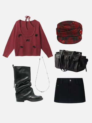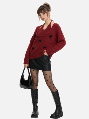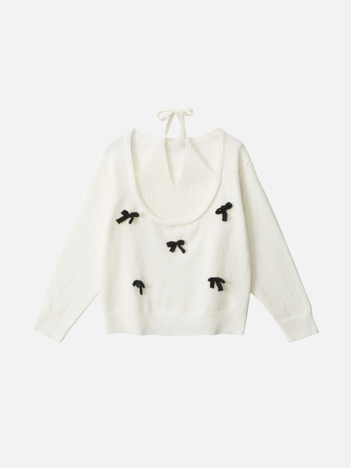 3D Bow Appliqué Detail: Adorned with multiple, neatly arranged black three-dimensional fabric bows on the chest, creating a charming, textural focal point and a sweet, romantic aesthetic.