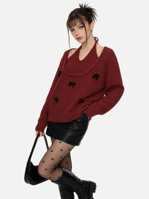 Haaura Bow Tie-Front Halter Neck Knit Top