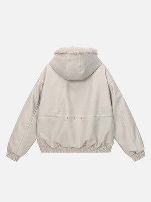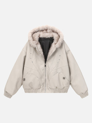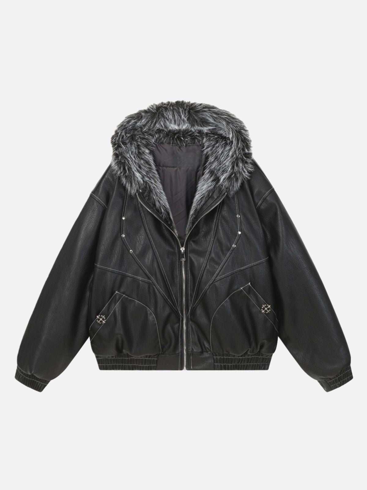 Haaura Fur-Trimmed Hood Zip-Up Leather Jacket