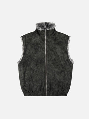 Haaura Leopard Trim Stand Collar Zip-Up Vest