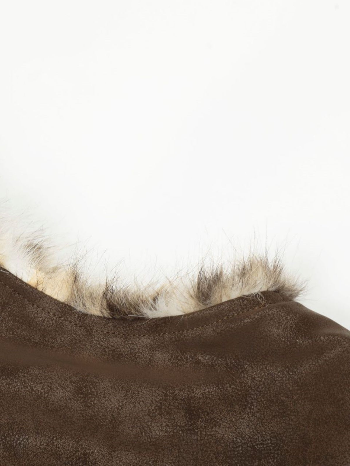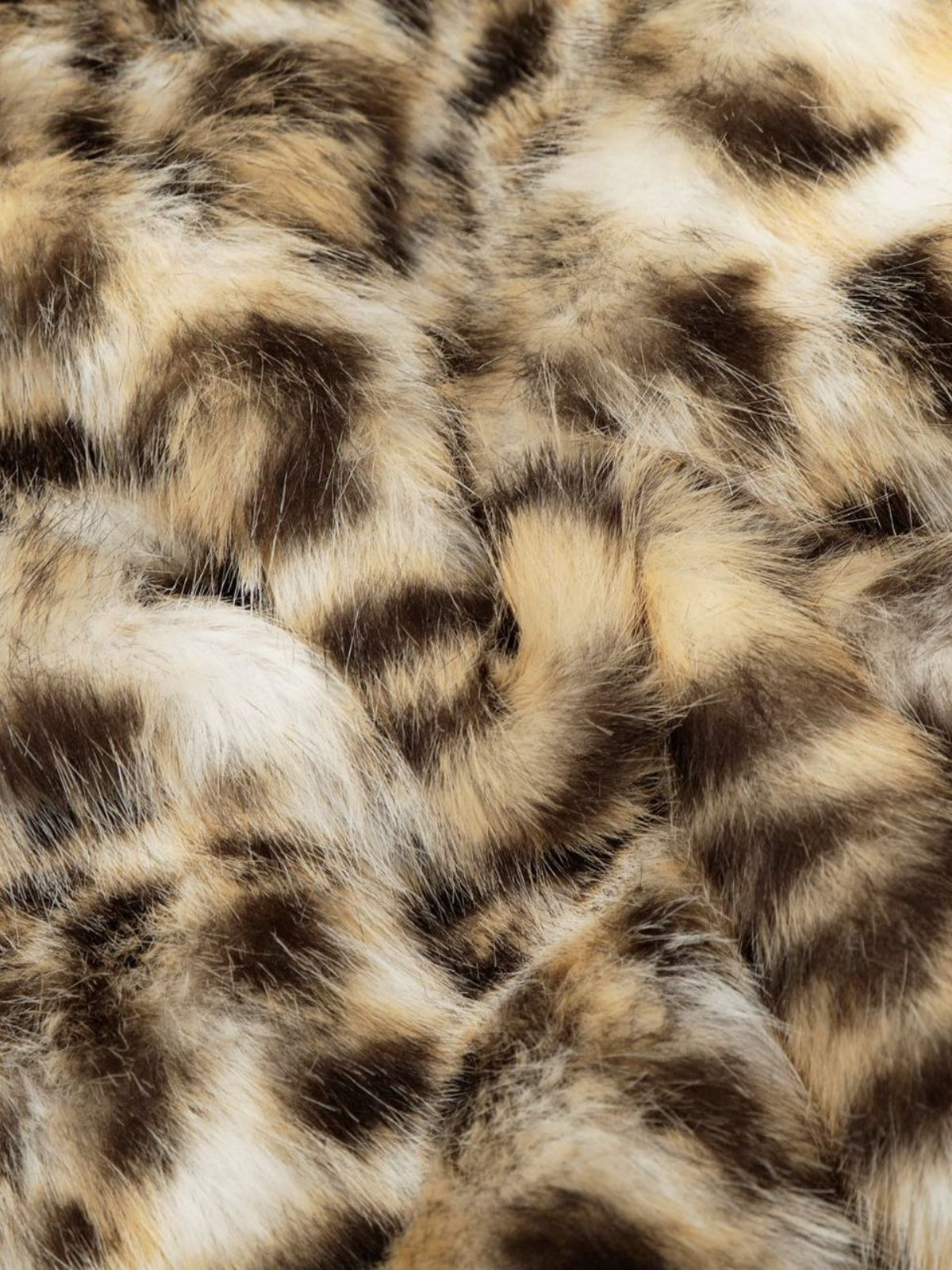 Beige-and-black leopard print faux fur trim on collar, armholes, and pockets