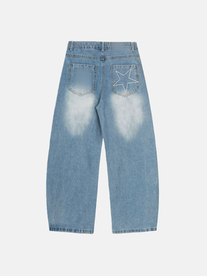 Haaura Stars Embroidery Baaggy Barrel Jeans