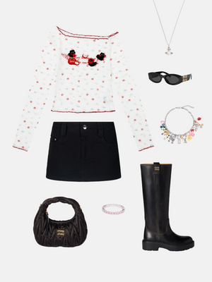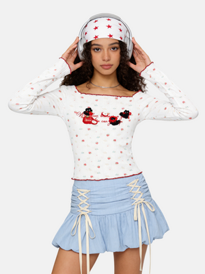 Serve looks, sprinkled with sweetness. The Haaura Strawberry Cat Embroidered Off-Shoulder Top is your go-to for effortless, romantic style.